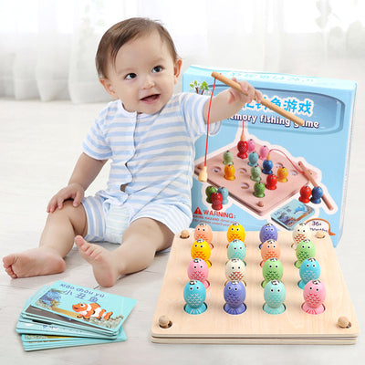 Go Fish, but Not With Cards! Wooden Memory Chess Fishing Game Uses Rods and Magnets to Build Motor and Memorization Skills